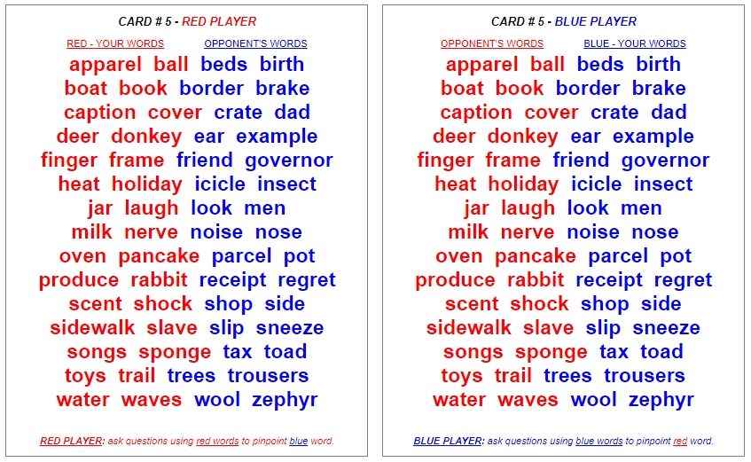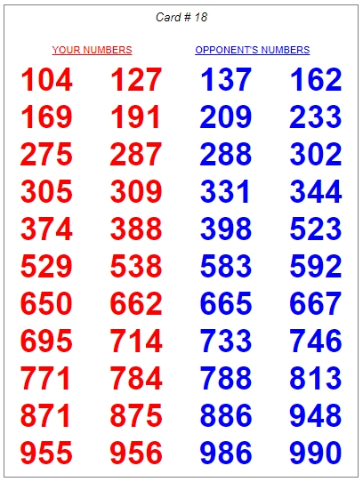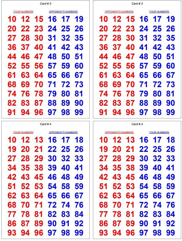 Both players get the same numbers but in different colours.